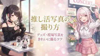 推し活写真の撮り方を解説。グッズ撮影、現場撮影、スマホ撮影のコツから加工方法まで、SNS映えする写真の撮り方を紹介します。